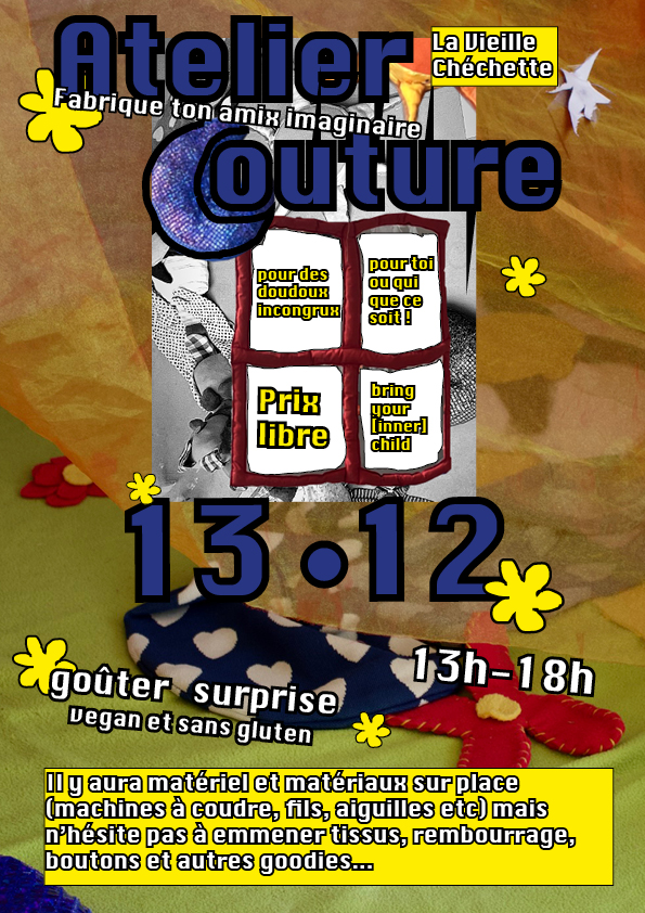 Après-midi participatif proposé par Anaël, bénévole au café. Venez avec vos copaines, vos enfants, ou juste vous-même, en miniature. Au programme : des aiguilles, du fil, de la musique et… un petit goûter!